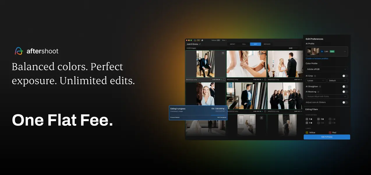 The software combines intelligent culling with batch editing tools and more. Aftershoot analyzes your editing preferences and applies consistent adjustments across galleries, handling exposure correction, color grading, and retouching. To make the whole process even better, you still get to review & refine any AI suggestions before you hand over the final product.