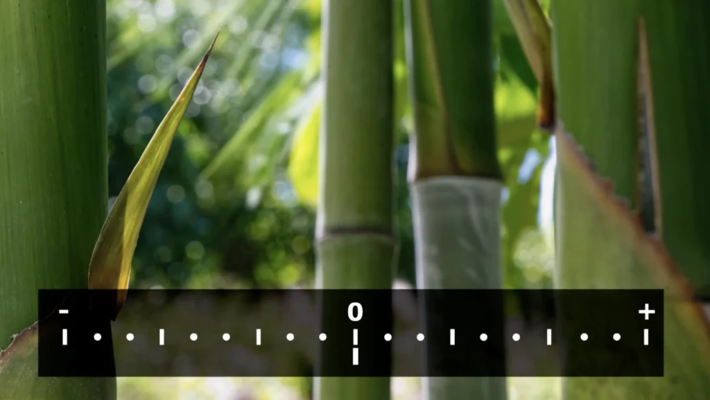 To adjust your exposure, change your ISO, aperture, or shutter speed until the vertical bar is centered on the meter scale, under the 0.