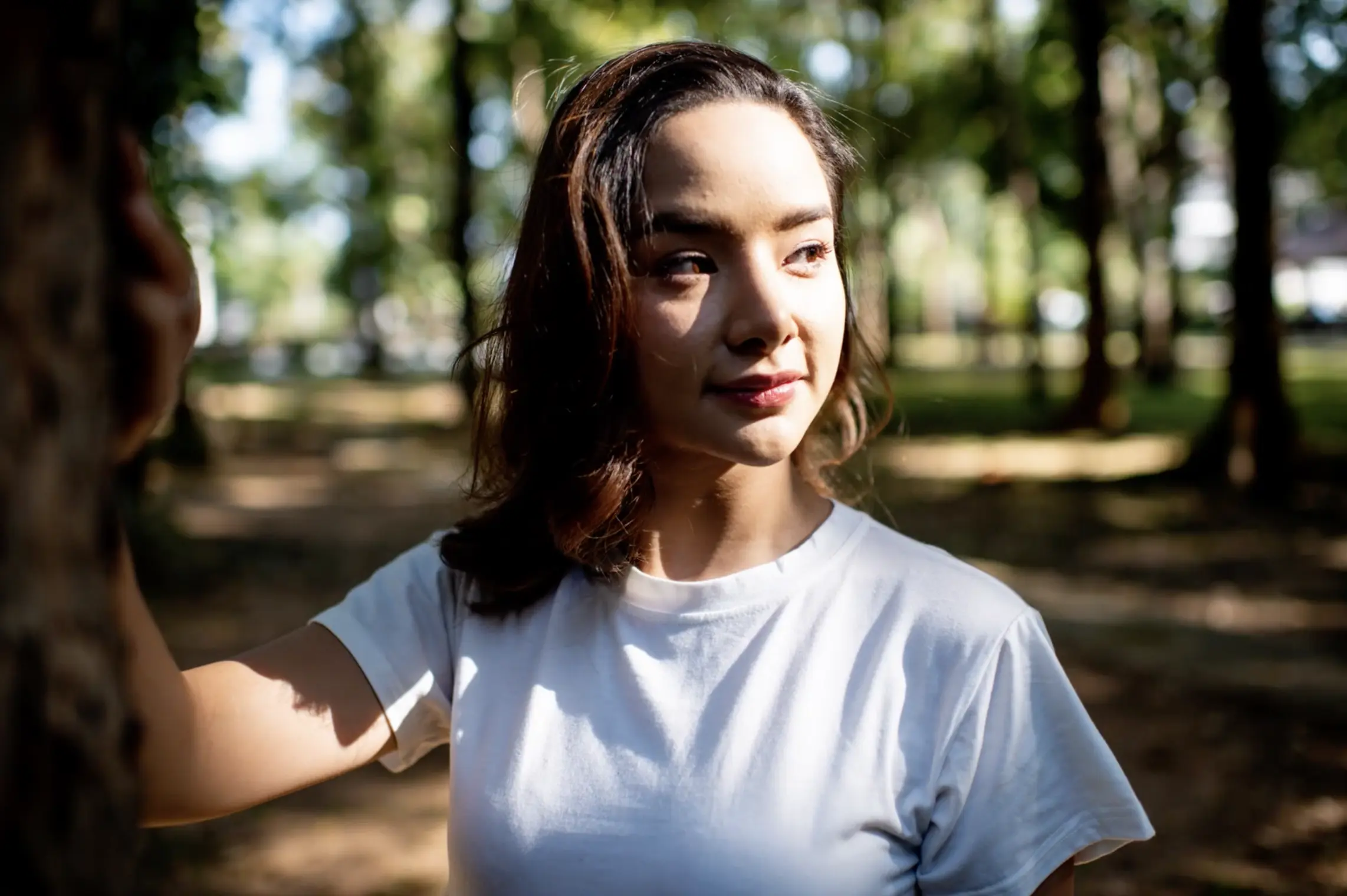 When directing hard light portrait photography, a great lighting setup is achieved by asking the subject to stand in direct sunlight, where you’d ideally like distinct shadows to hit their face.